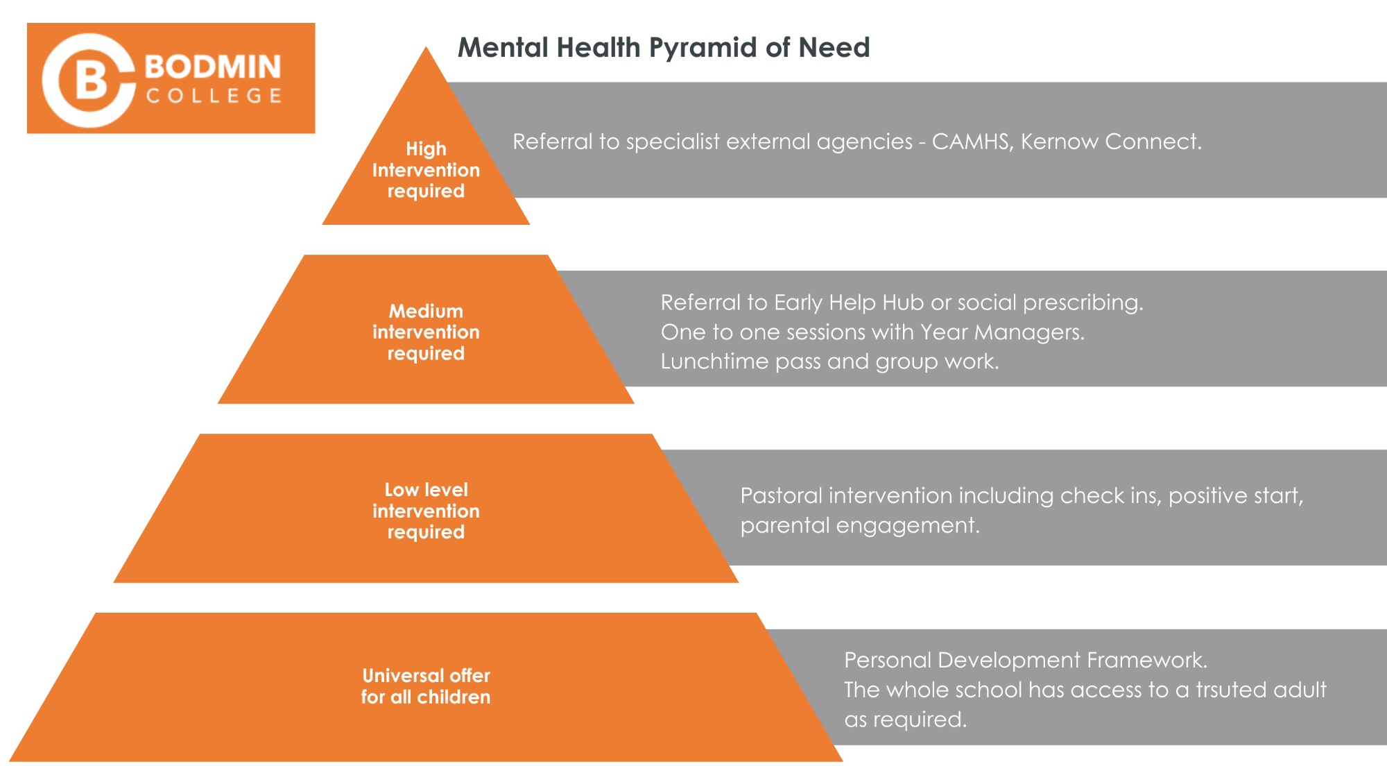 At Bodmin College we believe that good mental health and well-being can best be realised by creating a whole school culture that seeks to promote positive relationships throughout the school.